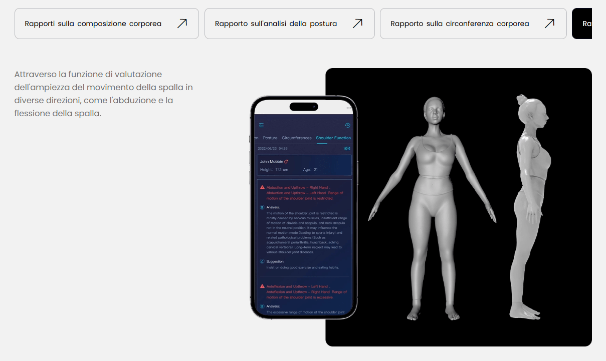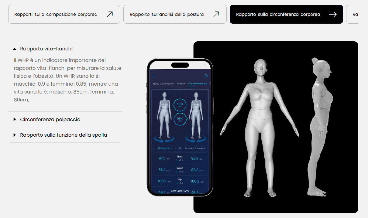Uno degli aspetti più potenti della tecnologia Visbody-S 30 è la possibilità di visualizzare in 3D l’evoluzione del proprio corpo. Questo aiuta i nostri clienti a comprendere meglio i progressi, mantenere alta la motivazione e sviluppare una maggiore consapevolezza del proprio percorso.
